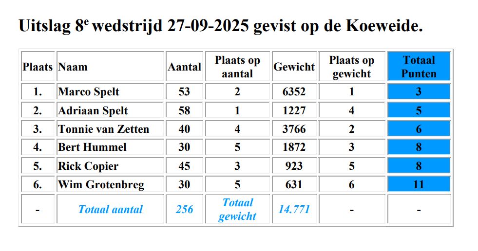 Marco Spelt wint 8e competitiewedstrijd met ruim 6 kilo