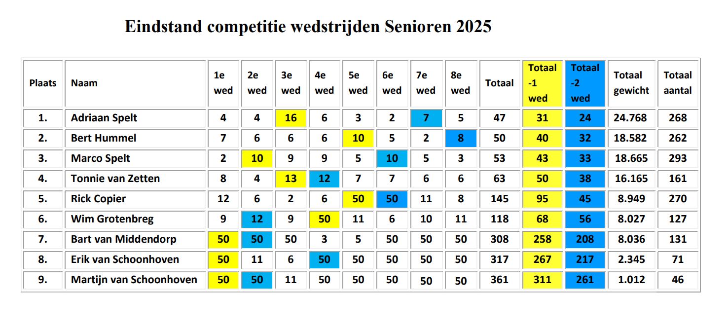 Na afloop werd bij de prijsuitreiking de eindstand van de competitie opgemaakt en afgesloten met een hapje en een drankje. Terugkijkend op het seizoen met leuke vangsten, een gezellige competitie en dat we het enorm getroffen hebben met het mooie weer.