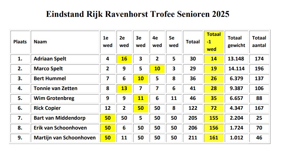 De strijd om de 2e en 3e plek in het eindklassement was nog volop gaande. Van de 8 wedstrijden telden er 5 mee voor de Rijk Ravenhorst Trofee, waarvoor nog vijf deelnemers kans maakten. Hierdoor bleef de spanning tijdens de wedstrijd goed aanwezig.