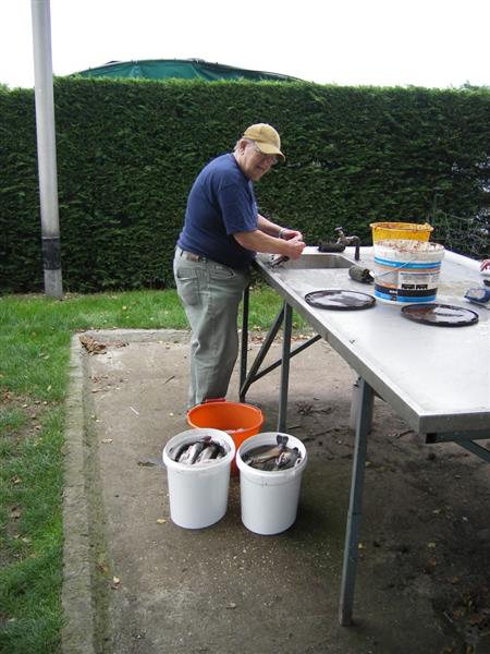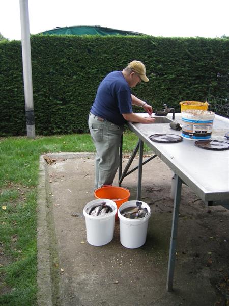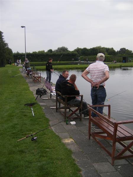 Zaterdag 12 september. Vandaag de traditionele vrijwilligers dag bij de forellenvijvers van “De Kamphoeve” te Ommeren. 22 deelnemers stonden rond 12.15 uur te popelen om in te kunnen werpen. Hek open! Een run naar de “beste” plekken.