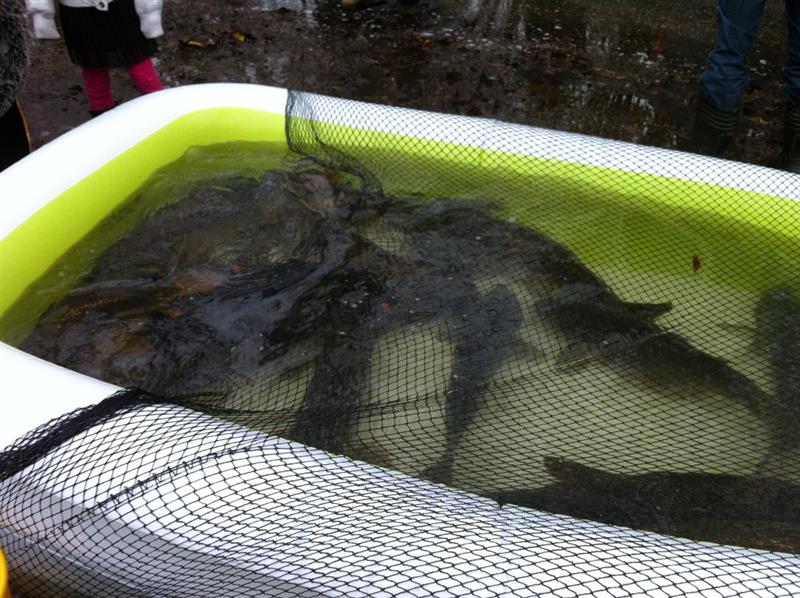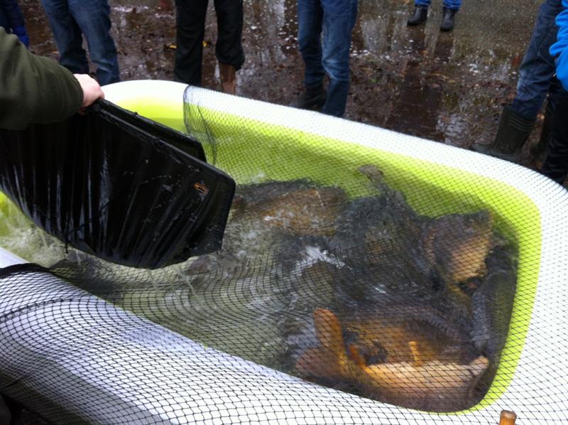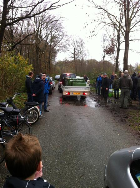 Zaterdag 21 november was het eindelijk zover, de bestelde grotere karpers voor het herstel van de Moba plas werden geleverd. De firma Carp Farm kwam voorrijden met een aanhanger met waterbakken en zuurstofpompen, waarin de bestelde karpers vanuit Frankrijk waren vervoerd.