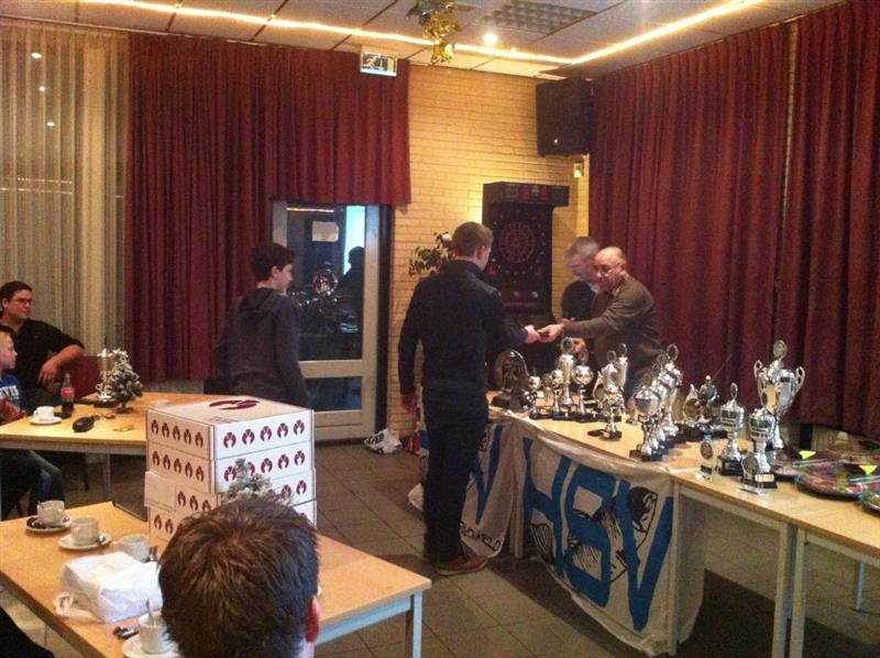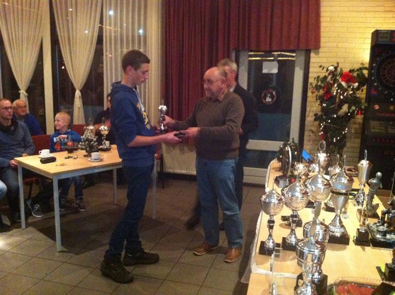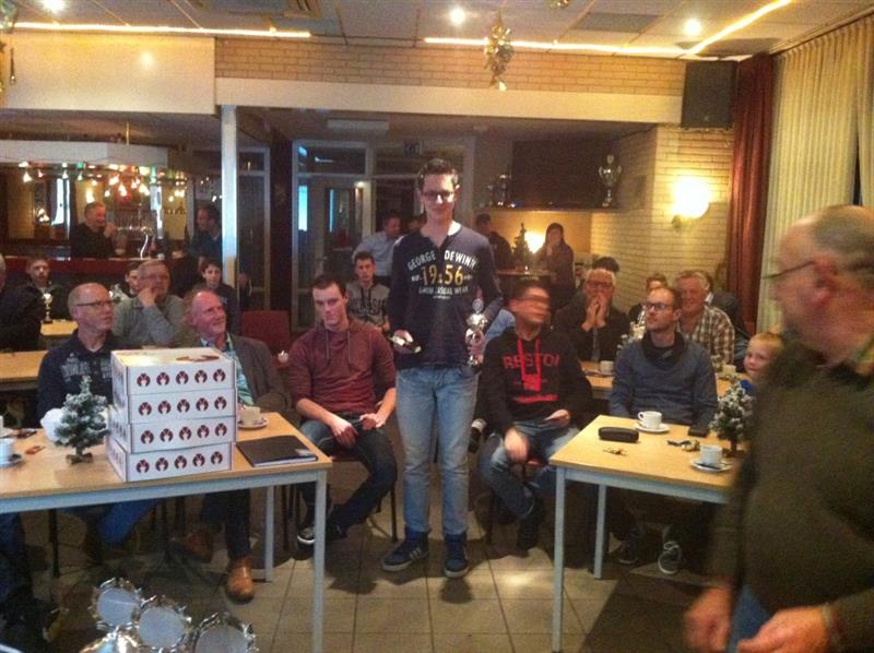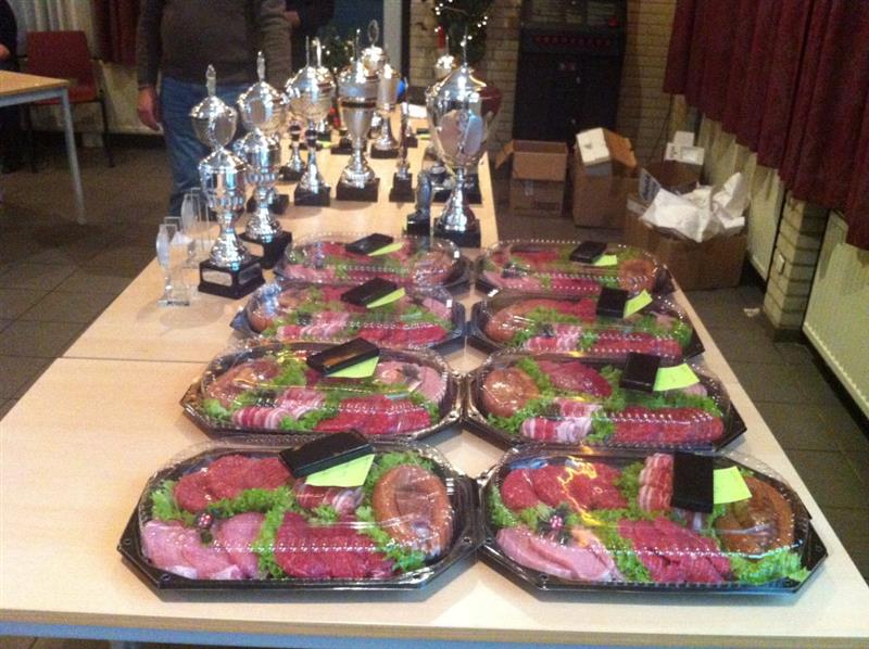 Het was een gezellige drukte tijdens onze jaarlijkse prijsuitreiking en Eindejaarsborrel in het Rebellenhonk. De prijzentafel was goed gevuld met bekers, trofeeën, sleutelhangers en prachtig opgemaakte vleesschotels van Slagerij Joosten. Na het openingswoord van de voorzitter Gerrit Knotters, maakten de verschillende wedstrijdcommissies de winnaars bekend en werden de prijzen uitgereikt.